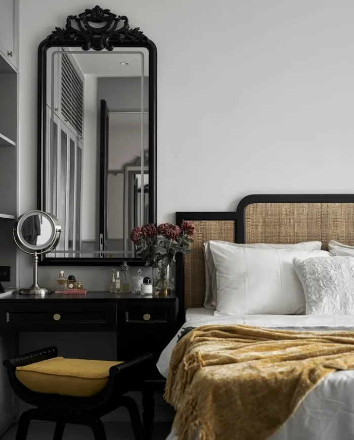 但本案是一個(gè)位于越南且僅有50㎡的小公寓,由于屋主對法式的熱愛,本案匯集巴黎與越南兩地異國風(fēng)情,讓古典與現(xiàn)代同時(shí)空相遇,展現(xiàn)有如法國女性般的高雅隨性,卻又不失精致細(xì)節(jié)。