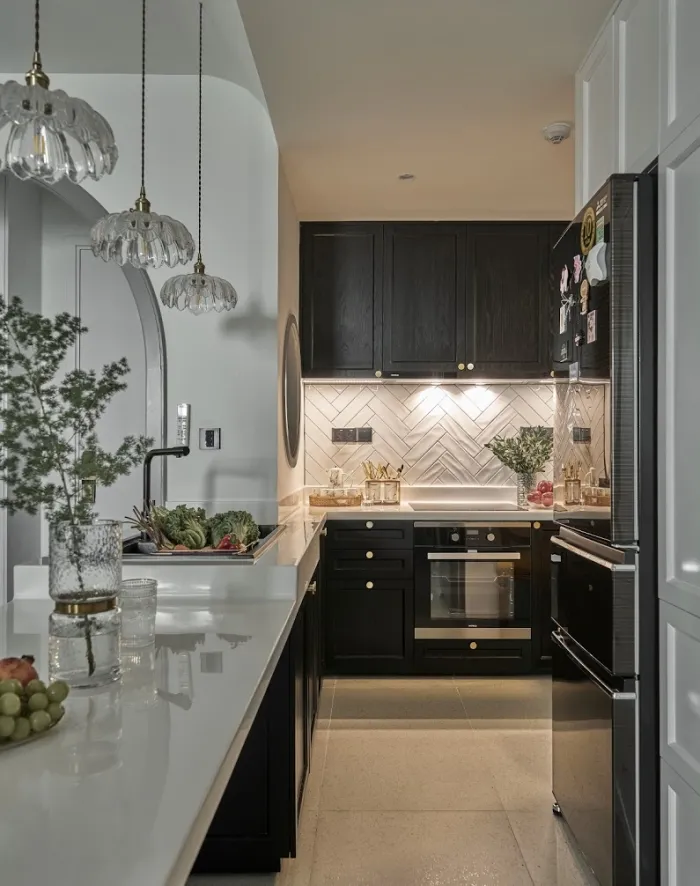 很多人都覺得法式古典一般是大宅才能擁有的風(fēng)格,法式輕奢往往會(huì)有相對比較復(fù)雜的雕花裝飾、大鏡子、大拱門等元素,這些元素也的確更適合放在大宅里。