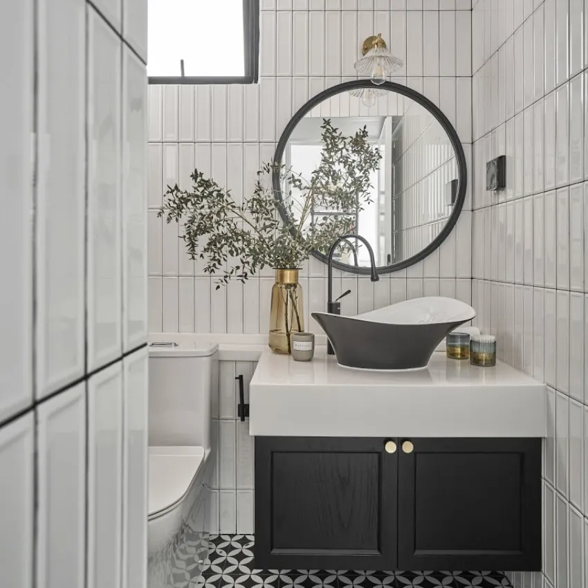 衛(wèi)生間雖小,五臟俱全,色調(diào)簡約統(tǒng)一,整體非常清爽舒適。